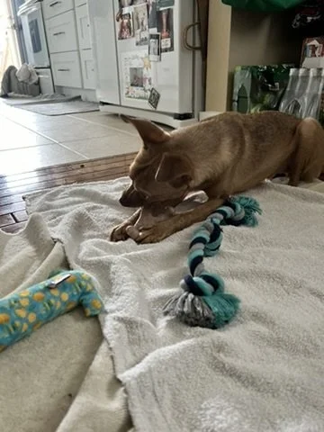 We could not love Pete more - full hearts all the way around, but we felt that he deserved even better than what we could offer him. We wanted a pack for Pete – people or other dogs to be around and play with all the time. A safe place where he could be the sweet, confident, smart dog we knew. We were able to connect with Creekside Animal Rescue and get his info posted for adoption.